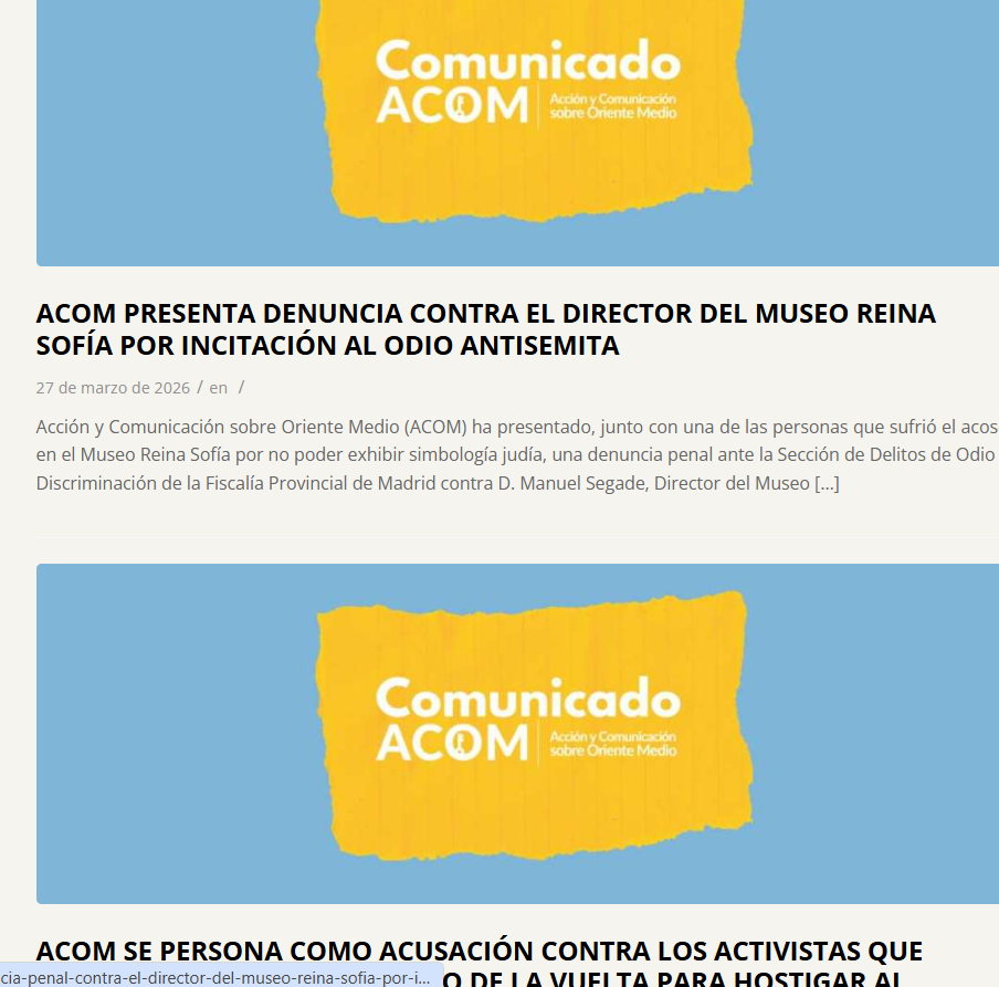 La organización ACOM ha ganado visibilidad en España en los últimos años a través de su actividad jurídica, su relación con determinados actores políticos y su presencia en el debate público sobre Israel. Algunas fuentes la consideran un actor legítimo de defensa política mientras otras la señalan como un instrumento de presión estructural.
