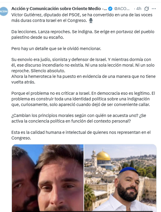 Algo similar ocurre con Vox. En una publicación de 2019, firmada en primera persona dentro del blog de la organización, ACOM defendía que el partido de Santiago Abascal no podía considerarse una formación antisemita. El texto iba un paso más allá al afirmar que existía conocimiento personal de algunos de sus dirigentes.