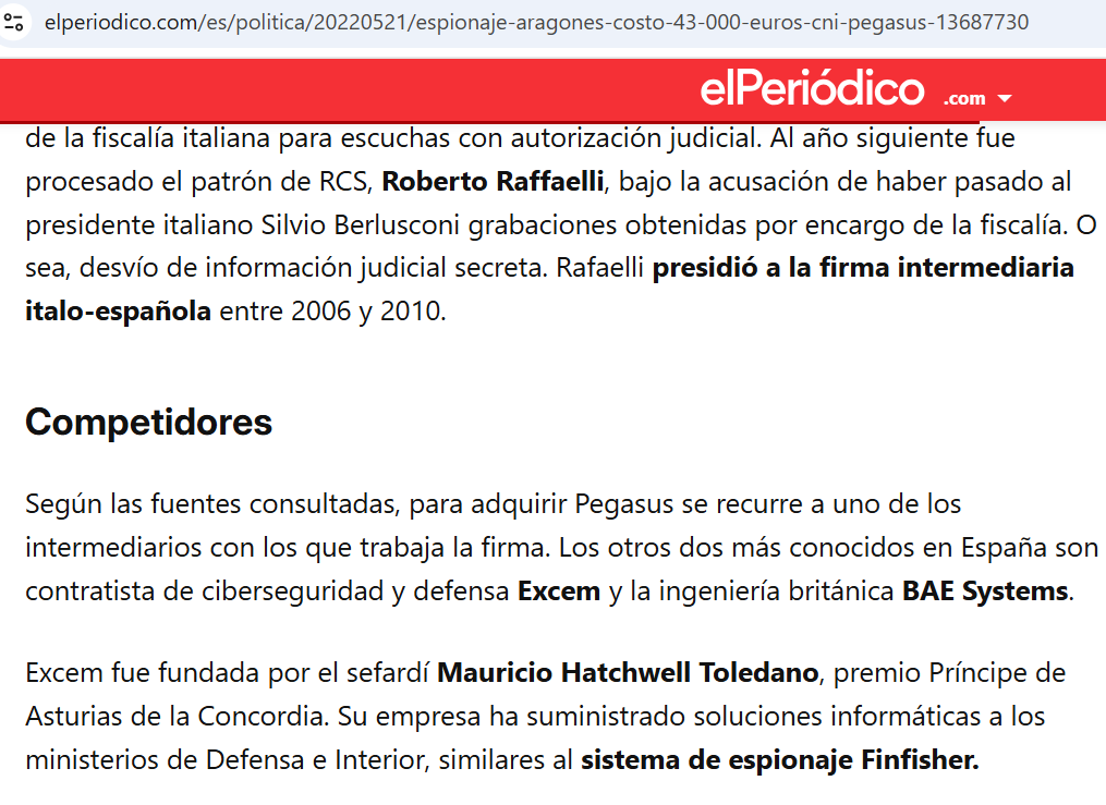 En ese contexto surge de forma recurrente la referencia a Pegasus, el software de espionaje desarrollado por NSO Group. Diversas investigaciones periodísticas han señalado a Excem como posible intermediaria en la distribución de este tipo de herramientas en mercados occidentales. Sin embargo, aquí conviene ser precisos: a diferencia de los contratos públicos documentados, no existe evidencia directa en registros oficiales que confirme esa intermediación concreta en España.