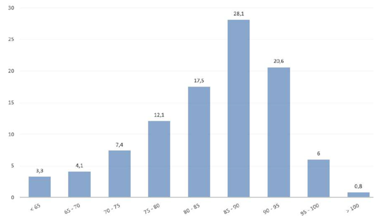 El estudio arrojó resultados muy expresivos de las necesidades sanitarias de una población muy envejecida (Gráfico 1). El 47,3 % eran frágiles avanzados; el 45,4 % sufría demencia severa; hasta un 43,7 % tenía dependencia total (solo el 7,9 % eran autónomos o dependientes leves) y el 72,9% utilizaba pañal (lo que señala la intensa carga de cuidados).
