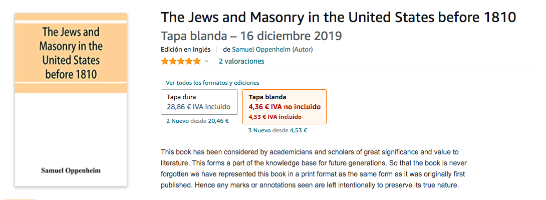 Samuel Oppenheim. The Jews and Masonry in the United States Before (1810)