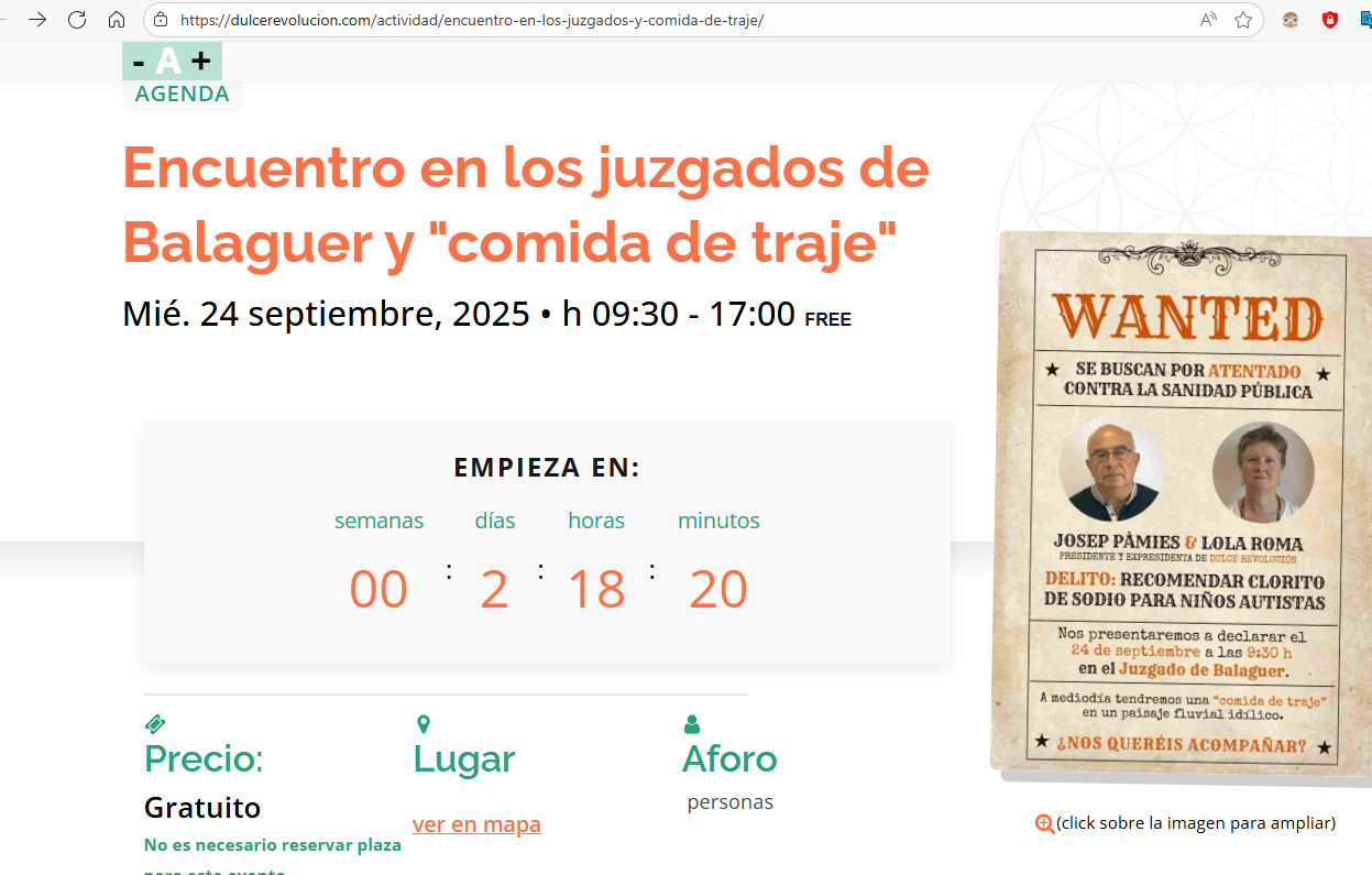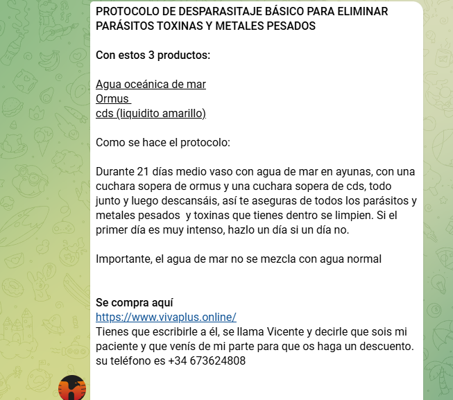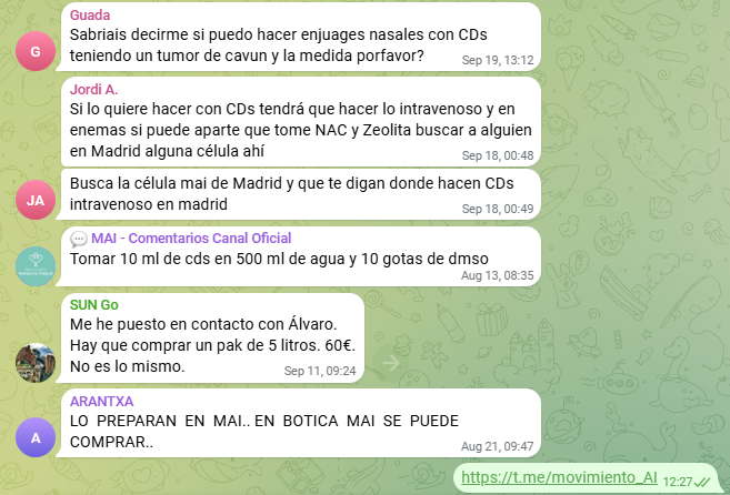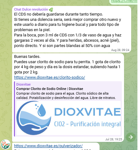 Otro de los principales difusores de las teorías de LQC es Josep Pàmies, agricultor reconvertido en activista de la salud natural y líder del colectivo Dulce Revolución. Esta plataforma promueve diversas terapias y productos sin aval científico, entre ellos el uso del dióxido de cloro (CDS) como supuesto tratamiento para enfermedades graves como el cáncer, el autismo o la COVID-19. Pàmies y su colectivo organizan charlas, talleres, ferias y cursos en los que se difunden estas prácticas, a menudo en un marco crítico hacia la medicina convencional y las autoridades sanitarias. En el chat @DulceRevolucionDifusion se suelen hablar de CDS y mencionar la tienda dioxvitae.es