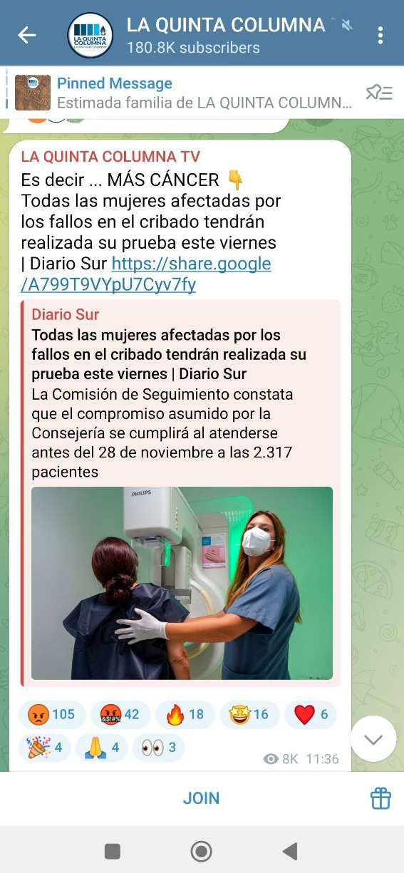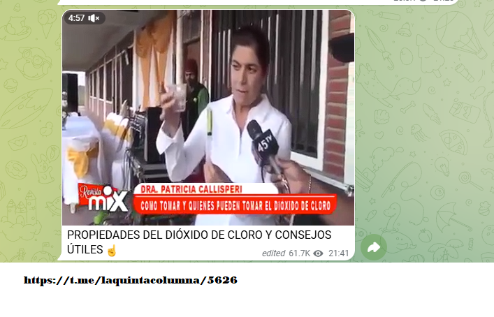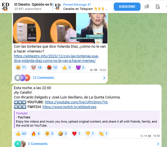 Difusión en su canal de Telegram.