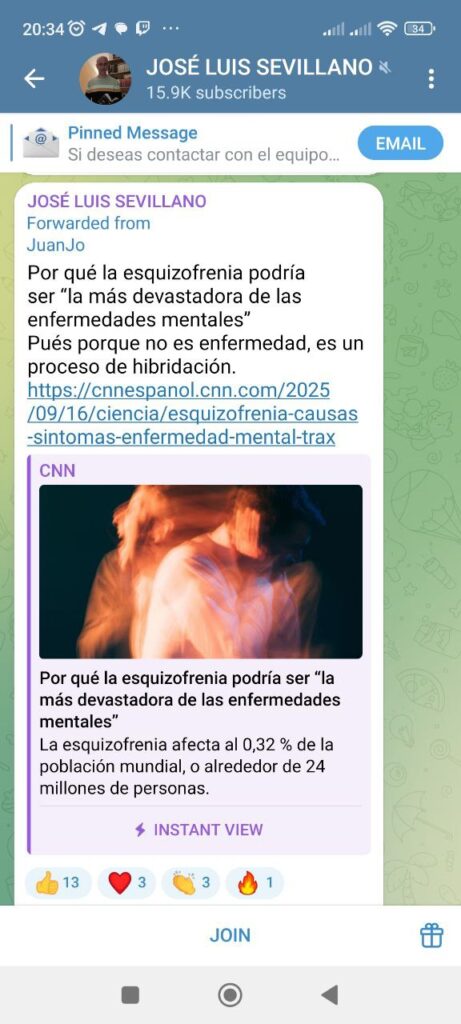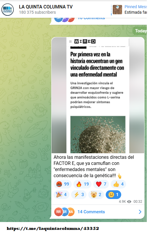 El doctor Sevillano comparte en su canal una publicación en la que se afirma que la esquizofrenia no es una enfermedad, es un proceso de hibridación.
