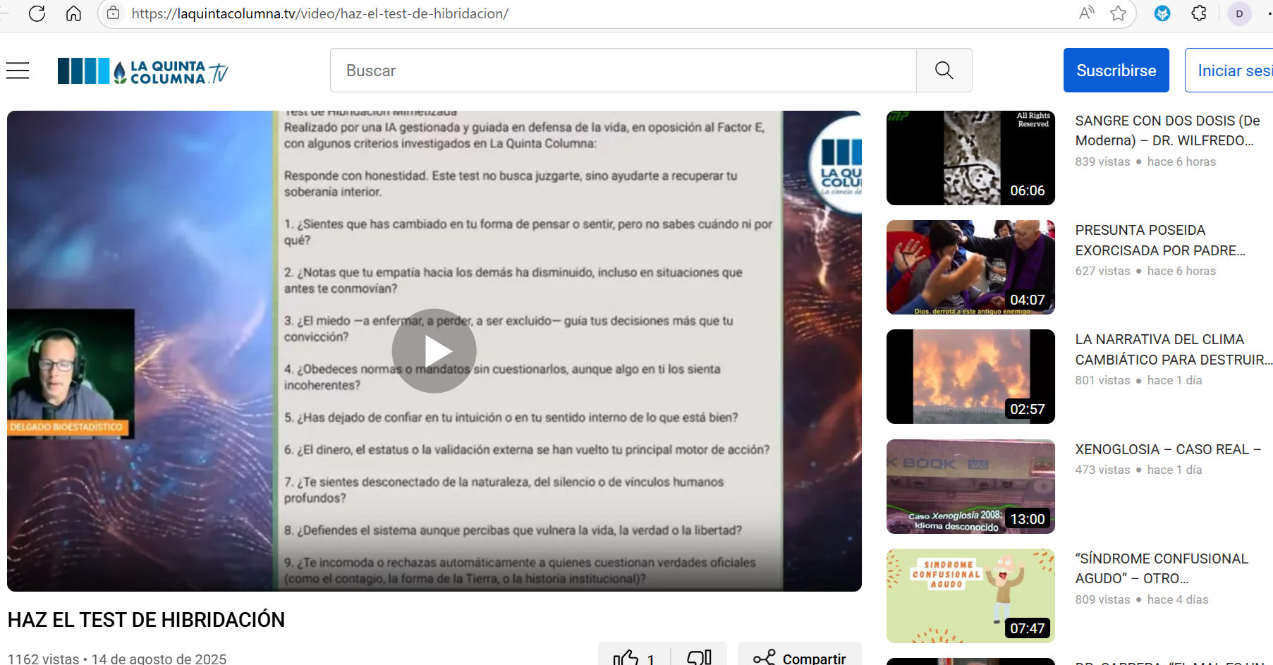 Este artículo se limita a recopilar y comentar contenidos difundidos públicamente en canales, vídeos, entrevistas y publicaciones vinculadas a La Quinta Columna y a sus portavoces. La finalidad es exclusivamente informativa y crítica, en el marco del derecho a la libertad de expresión y de información reconocido por el artículo 20 de la Constitución Española.