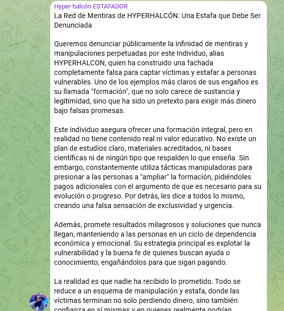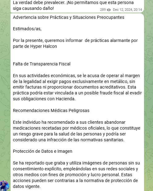 6. El control sobre la información es otro aspecto destacado. Según se observa en sus canales, cualquier opinión contraria a la de los líderes puede acarrear la expulsión del grupo. Sus espacios de comunicación están gestionados de forma muy estricta, y en una de sus intervenciones Ricardo Delgado llegó a advertir que expulsaría a quienes cuestionaran algún aspecto de sus planteamientos. Esta dinámica transmite la impresión de que se desincentiva la discrepancia y se refuerza la conformidad del grupo.