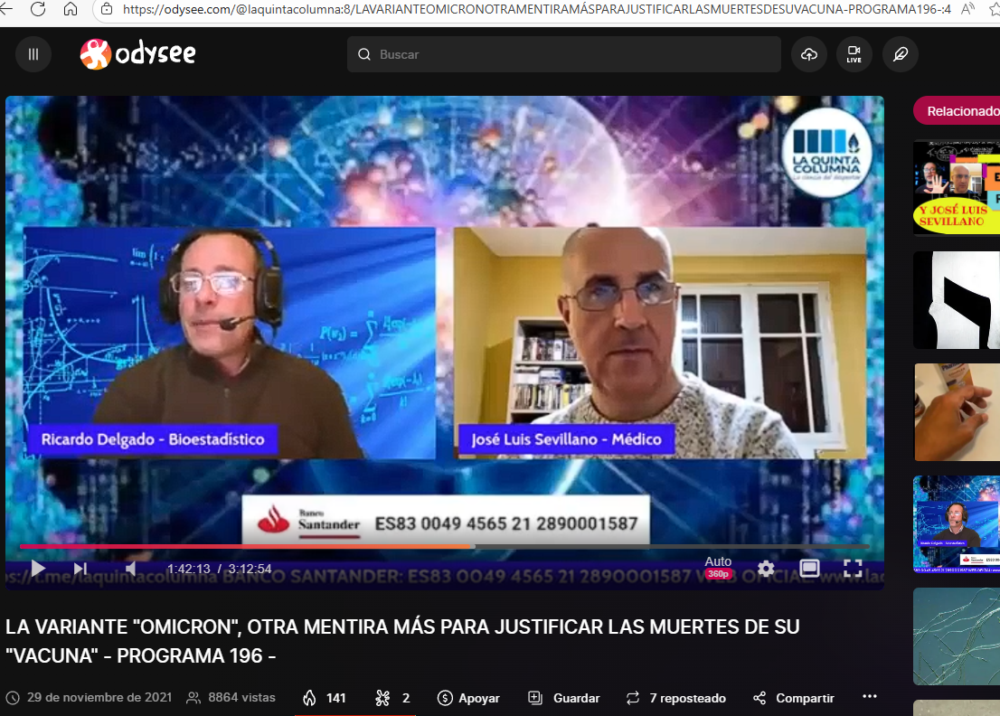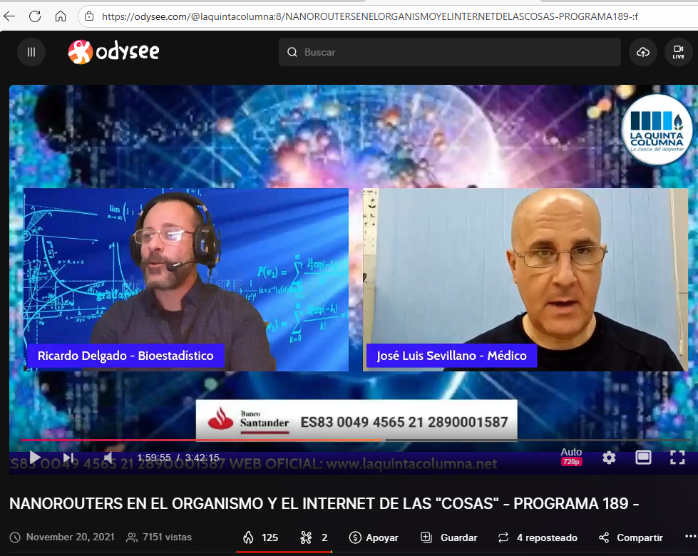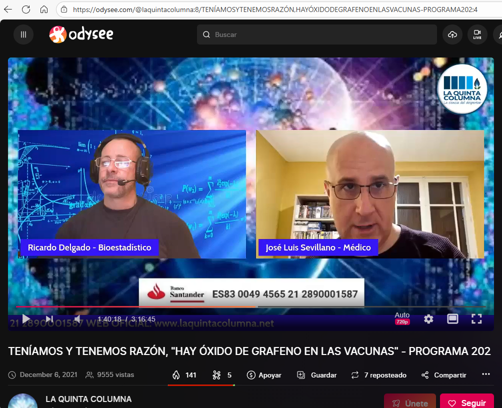 El doctor Sevillano concede una entrevista para el documental PlanetLockdown en el que habla del «biomagnetismo», radio modulación, grafeno y las vacunas covid: «..nos hace pensar que parte de este biomagnetismo viene vía vacunas, pero no todo…13:52»