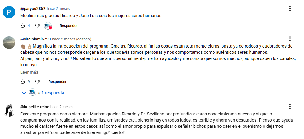 4. Las críticas o cuestionamientos dirigidos a sus principales promotores tienden a provocar en sus transmisiones respuestas de tono confrontativo, lo que transmite una marcada intolerancia hacia la disensión. Su discurso aparece formulado de manera cerrada y con una autoridad comunicativa percibida como difícil de cuestionar en sus canales, lo que en muchos seguidores genera la percepción de estar ante figuras excepcionales. En la práctica, quienes se alinean sin reservas con el líder reciben atención y consideración, mientras que aquellos que se atreven a discrepar pueden ser expuestos públicamente o descalificados. Esta dinámica pone de manifiesto una contradicción: se proyecta una imagen de fortaleza y sabiduría, pero al mismo tiempo se evidencia una notable vulnerabilidad frente a la crítica.