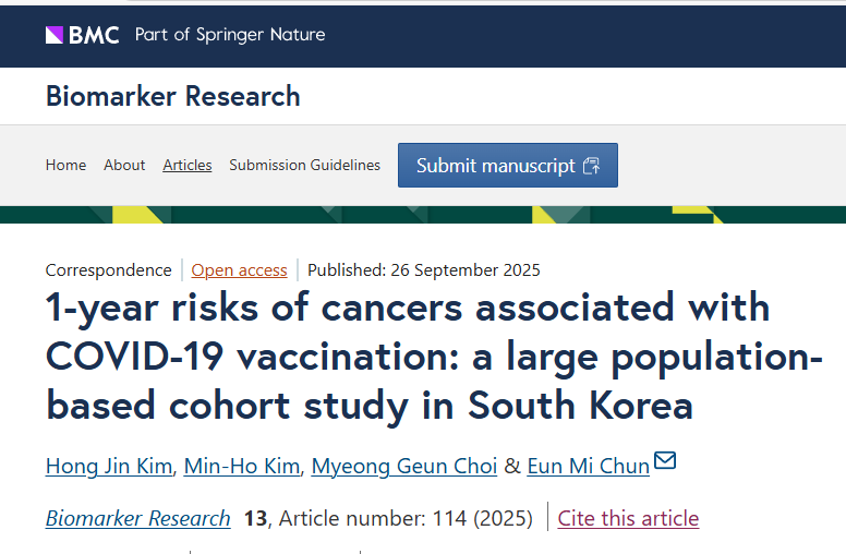 Kim, H., Kim, MH., Choi, M. et al. 1-year risks of cancers associated with COVID-19 vaccination: a large population-based cohort study in South Korea. Biomark Res 13, 114 (2025). https://doi.org/10.1186/s40364-025-00831-w