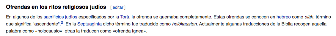 También en Wikipedia se reconoce el origen etimológico del holókauston desde la Septuagenaria judía, como ofrenda ígnea: