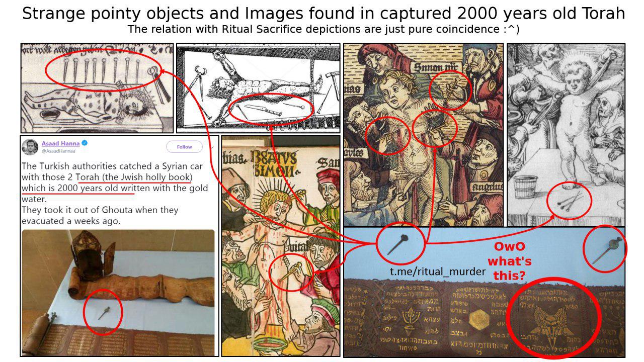 Estos rituales, actualmente catalogados como «conspiranoia antisemita«, han sido recogidos en la literatura a lo largo de milenios y civilizaciones, donde los judíos han sido acusados de realizar de forma habitual sacrificios humanos como parte de la celebración de la Pascua Judía. Históricamente, estas acusaciones alegaban que la sangre de niños cristianos era especialmente apreciada.
