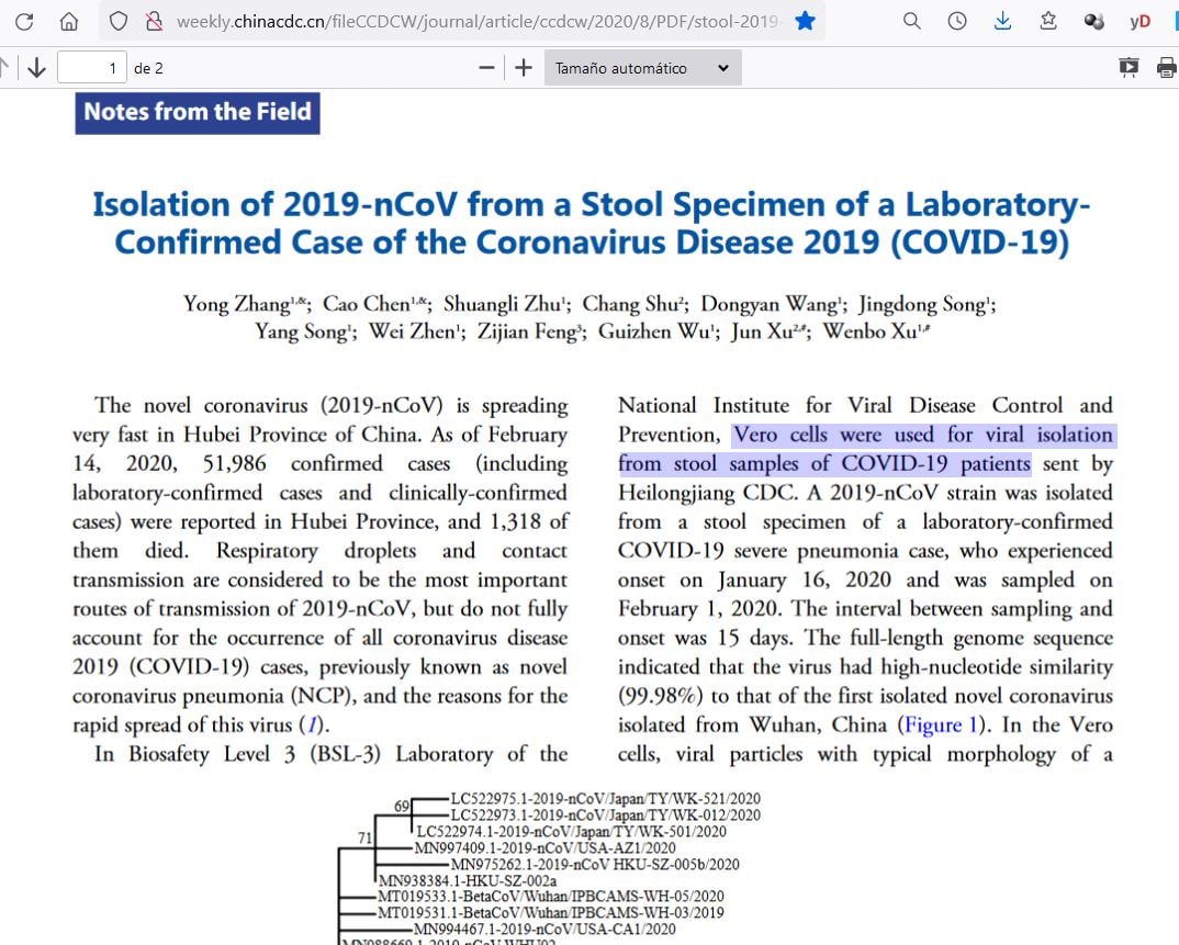 Los medios oficialistas nos remiten a ese artículo científico de The New England Journal of Medicine (NEJM) publicado en febrero de 2020 en el que se puede leer cómo un equipo de investigadores chinos aisló el coronavirus de Wuhan de pacientes con neumonía y después de secuenciarlo y completarlo en un laboratorio, se consiguió reproducir en vías respiratorias resecadas de cirugías por cáncer de pulmón.